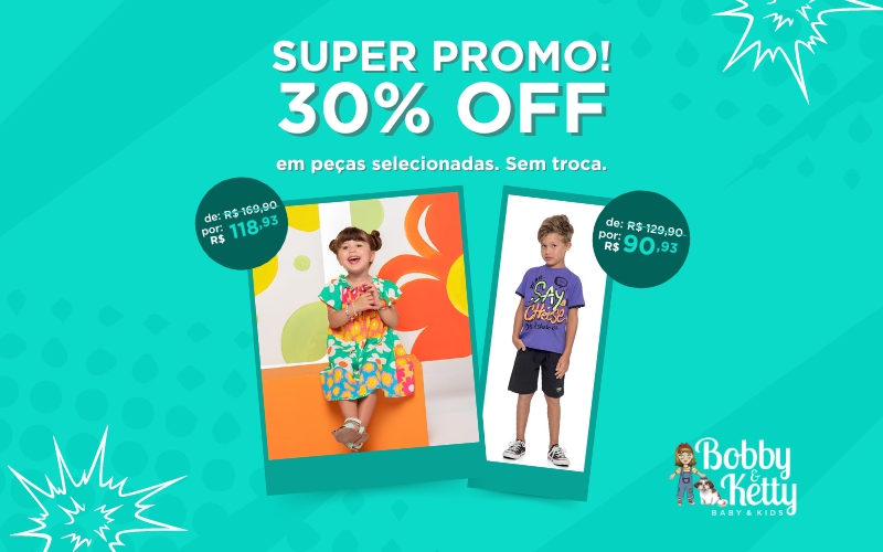 Vem que temos um espaço completo de outlet com 30% DE DESCONTO nas lojas!